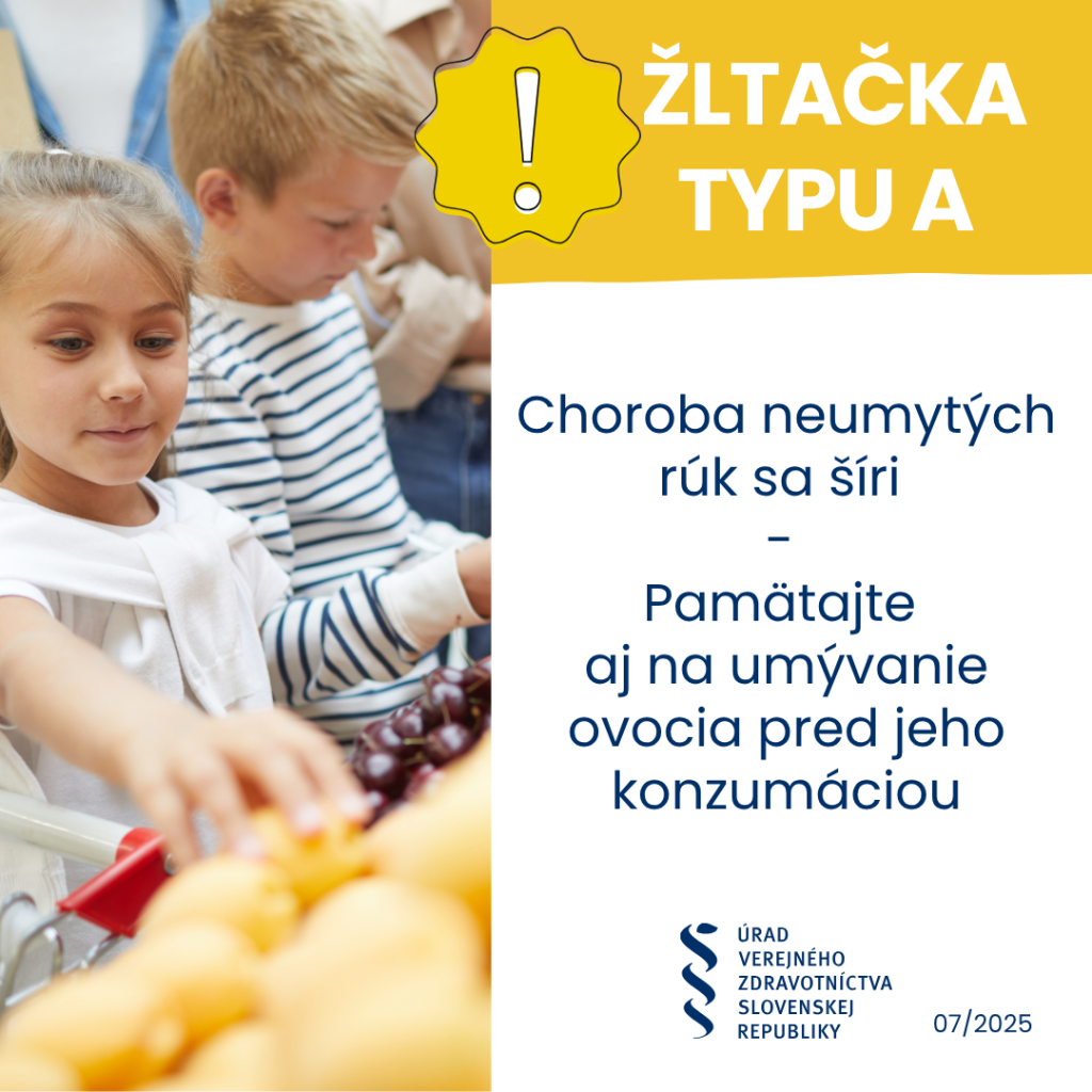 Dovoľujem si upozorniť všetkých obyvateľov, ale najmä rodičov malých detí, aby v tomto období sezónneho predaja drobného ovocia, ako sú napríklad maliny, černice, ríbezle, ho pred konzumáciou dôkladne umyli prúdom tečúcej pitnej vody, pretože žltačka sa dokáže šíriť aj neumytým ovocím.